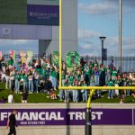 - Fans and the Wildcat Wranglers celebrate after the team scores a touchdown during the game against Tarleton. (Photo by Daniel Curd)