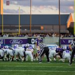 - The Wildcats gather around Harold West, redshirt senior defensive back from Arlington, after his brother and Tarleton player Trevon West, redshirt senior and wide receiver from Fort Worth, received medical attention on the field. (Photo by Ashley Henderson)