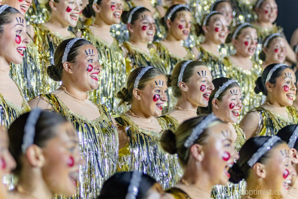 The women of Sigma Theta Chi dress as Radio City Rockettes during their act at Sing Song 2026. (Photo by Daniel Curd)