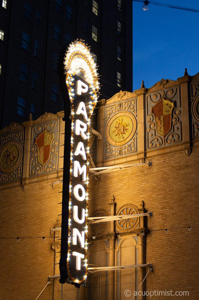 April 15, 2026 by Callie Brimberry Leave a Comment The Paramount Theatre sign sparkles in the downtown streets. (Photo by Callie Brimberry)