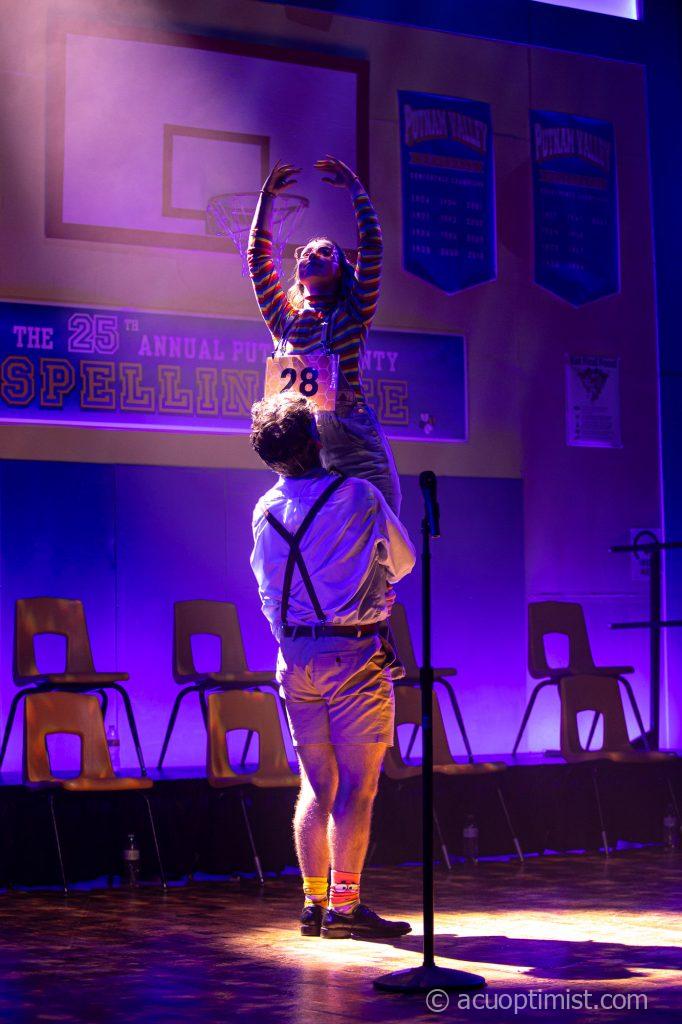 April 22, 2026 by Callie Brimberry Leave a Comment Olive Ostrovsky, played by senior theatre major Megan Sloane, is lifted in a dance with William Barfee, played by junior theatre major Matthew Lietz. (Photo by Callie Brimberry)