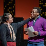- Rose Alvarez, played by Maya Padilla, comforts Hugo Peabody, played by James Bradshaw, after he is overlooked by Kim MacAfee. (Photo by Daniel Curd)
