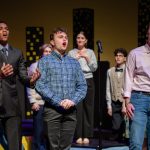 - Members of the ensemble give a heartfelt message before Conrad’s final goodbye. (Photo by Daniel Curd)