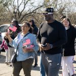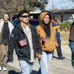 - Members of the Abilene community walk in the MLK Day march while waving the American flag. (Photo by Callie Brimberry)