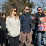 - Chris Riley, associate professor of government and criminal justice, and Nathan Sanders, church administrator at Highland Church of Christ, gather with members of the Abilene community for a photo while holding a sign. (Photo by Callie Brimberry)