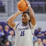 - Bradyn Hubbard, senior forward from Tulsa, Oklahoma, takes a free throw. (Photo by Naya Pacheco)
