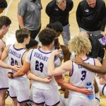 The team huddles during a media timeout. (Photo by Naya Pacheco)