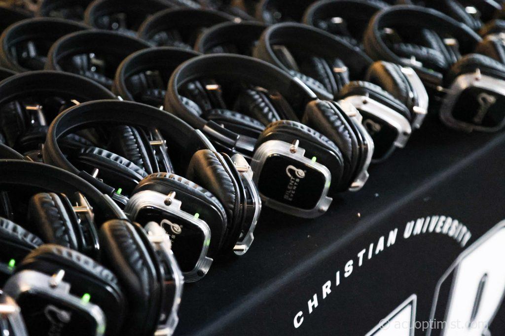 Headphones provided by CAB lie ready for students to participate in the silent disco. (Photo by Callie Brimberry)