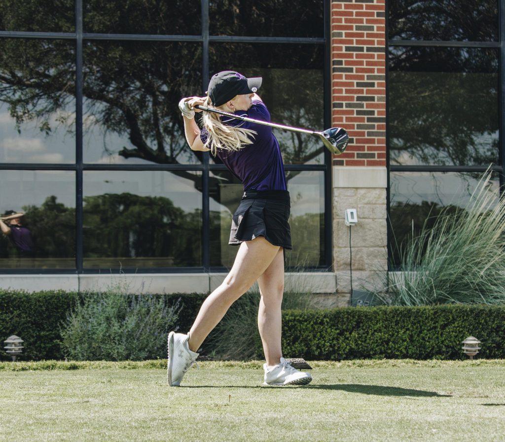 January 29, 2026 by Roman Raffaeli Leave a Comment Kate Pickrell, junior from Austin, watches her drive sail down the fairway. (Photo Courtesy of ACU Athletics)