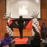 - Students pose with their WCs at the Hair and Fashion Pageant Show hosted by the Black Student Union. (Photo by Callie Brimberry)