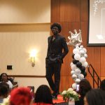 - Ebone Durham, junior communication disorders major from Garland, poses at the end of the runway. (Photo by Callie Brimberry)