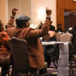 - An attendee at the Hair and Fashion Pageant Show raises his hands in applause. (Photo by Callie Brimberry)