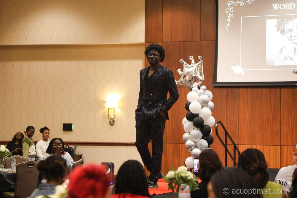 February 23, 2026 by Callie Brimberry Leave a Comment Word Daniel, junior art major from Arlington, walks down the runway. (Photo by Callie Brimberry)