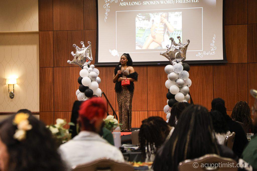 February 23, 2026 by Callie Brimberry Leave a Comment Asia Long, sophomore animal science major from Austin, performs a freestyle poem. (Photo by Callie Brimberry)