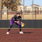 - Emerson Meggers, junior infielder from Vacaville, California, waits to catch the ball. (Photo by Callie Brimberry)