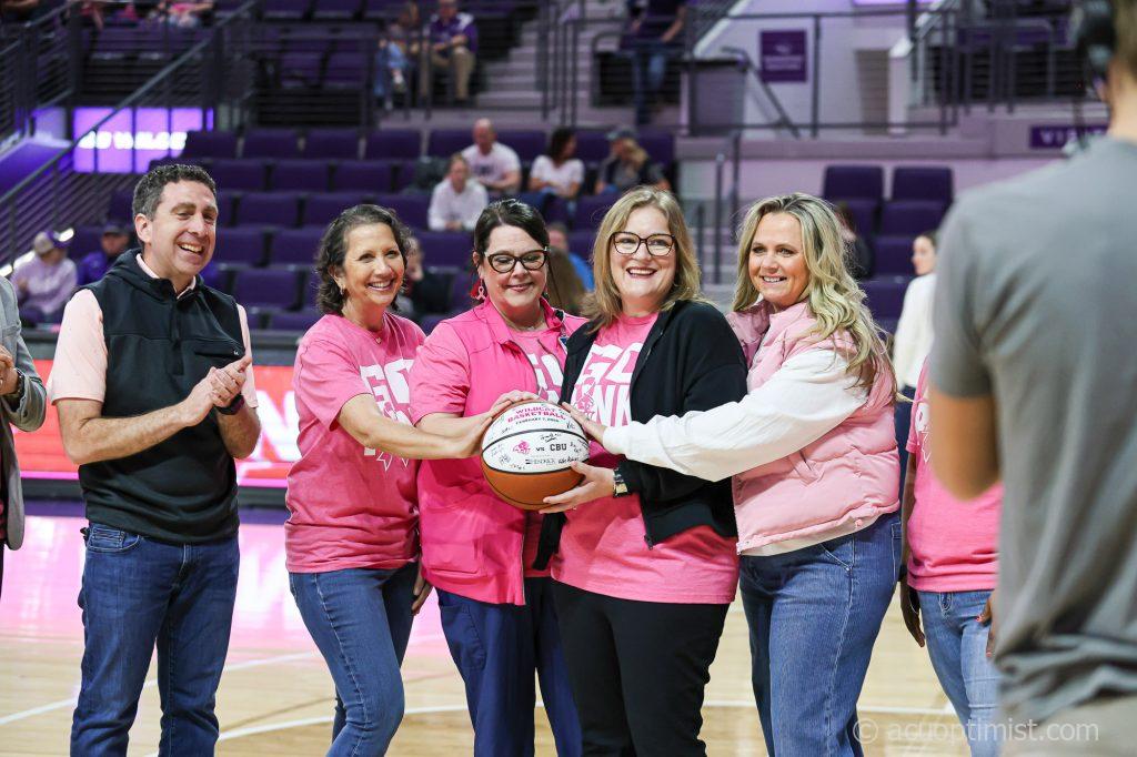 February 10, 2026 by Callie Brimberry Leave a Comment Cancer survivors hold a signed basketball and smile for a photo during the game. (Photo by Callie Brimberry)