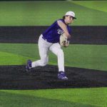 - Carson Wallace, freshman left-handed pitcher from Harleton, throws a pitch. (Photo by Daniel Rhodes).