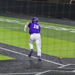 - Diego Cardenas, senior infielder from El Paso, runs to first base. (Photo by Callie Brimberry).