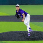 - Carson Wallace, freshman left-handed pitcher from Harleton, throws a pitch. (Photo by Daniel Rhodes).