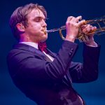 - Barrett Roberson, sophomore psychology major from Abilene, plays the trumpet during “Cry Me a River” by Michael Bublé at Sing Song 2026. (Photo by Daniel Curd)