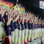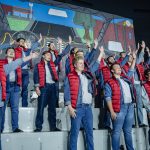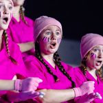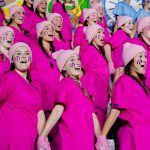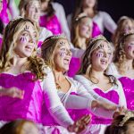 - The 2026 Sing Song hosts and hostesses and the dance team strike a final pose after performing the opening song “Good Time” by Owl City and Carly Rae Jepsen. (Photo by Daniel Curd)