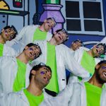 - Members of the Senior act sing together during their mad scientist-themed act at Sing Song 2026. (Photo by Daniel Curd)