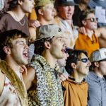 - Left to right. Brady Locke, Junior accounting major from Yakima, Washington, Cade Japhet, senior kinesiology major from North Richland Hills and Drew Page, junior finance major from Lubbock sing with the men of Galaxy during their “Moonies on Fire” act at Sing Song 2026. (Photo by Daniel Curd)