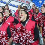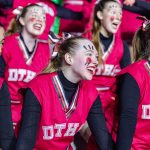 - The women of Delta Theta show off their pom-poms during their cheerleader-themed act at Sing Song 2026. (Photo by Daniel Curd)