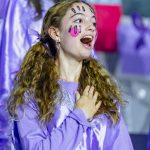 - Denise Cardona, senior management major from El Paso, sings along with the women of Tri Kappa Gamma during their “Alice in Wonderland”-themed act at Sing Song 2026. (Photo by Daniel Curd)