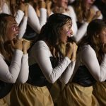 - GATA sing song director, Ava Houston, senior English major from Fort Worth, strikes a final pose during the “The Nutcracker”-themed act at Sing Song 2026. (Photo by Sarah Eunyoung Thompson)