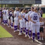 - ACU and Texas Tech gather for a prayer to conclude the game. (Photo by Naya Pacheco)
