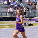 - Halle Gunter, freshman multisport athlete from Midland, competes in the women’s 100 meters. (Photo by Callie Brimberry)