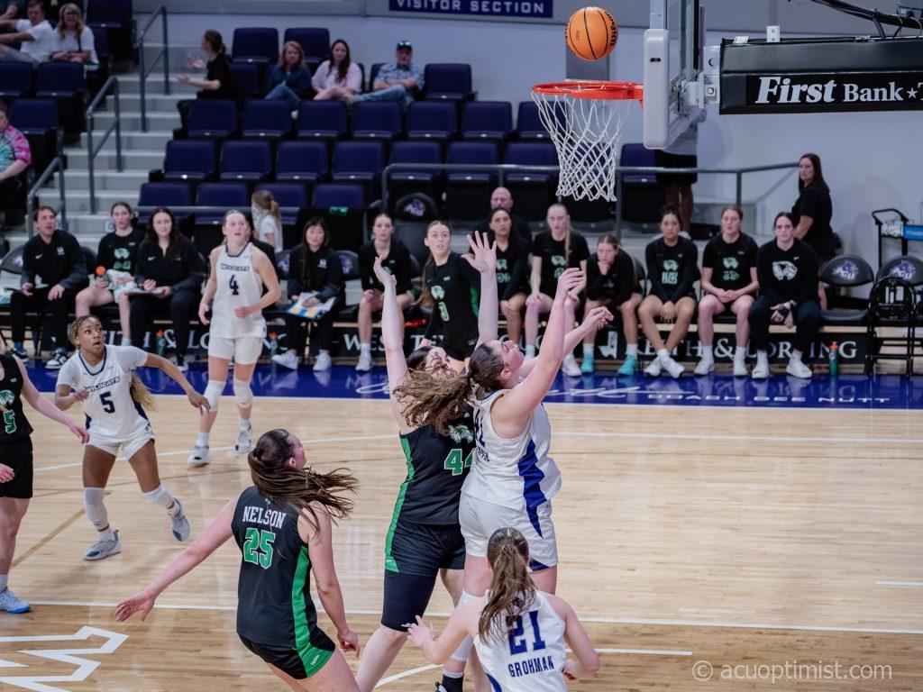 Aimee Flippen, sophomore center from Glen Rose, shoots a layup. (Photo by Daniel Curd)