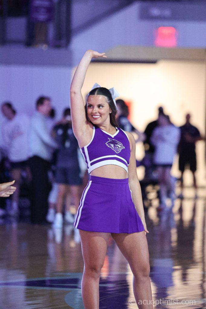 March 2, 2026 by Callie Brimberry Leave a Comment Briley Campbell, freshman kinesiology major from Belton, waves to the crowd on the basketball court at Moody Coliseum. (Photo by Callie Brimberry)