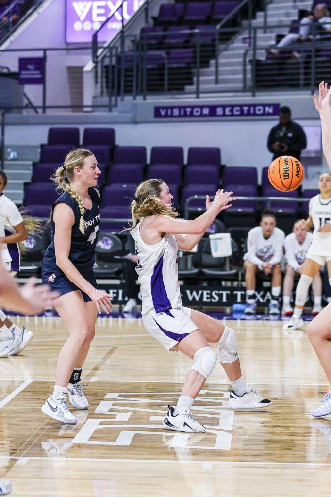 March 2, 2026 by Callie Brimberry Leave a Comment Erin Woodson, junior guard from Richmond, Virginia, reaches for the ball at Moody Coliseum. (Photo by Callie Brimberry)