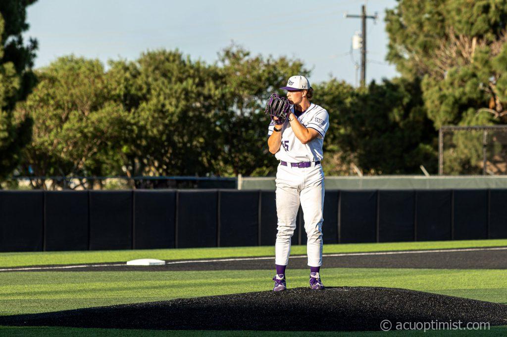 April 6, 2026 by Callie Brimberry Leave a Comment Brett Lanman, junior left-handed pitcher from Fairview, holds up his glove, preparing to pitch the ball. (Photo by Callie Brimberry)