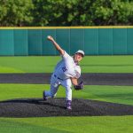 - Aiden Coleman, junior right-handed pitcher from Stone Oak, pitches toward a UT Arlington player. (Photo by Daniel Rhodes)