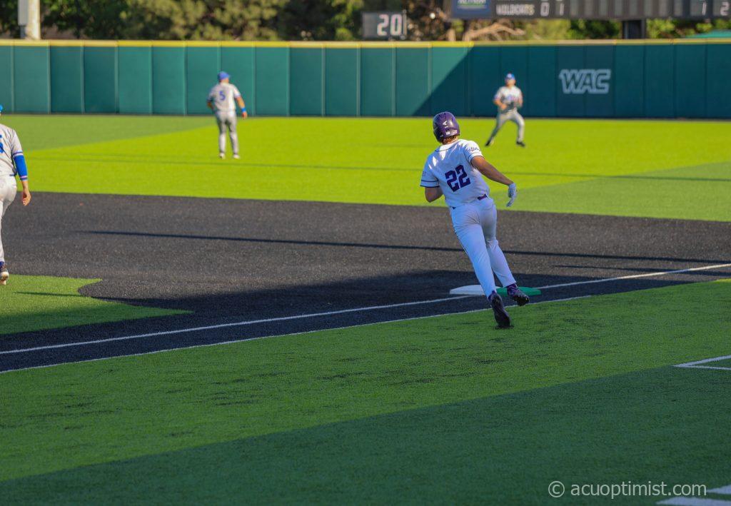 April 25, 2026 by Daniel Rhodes Leave a Comment Brady Ladusau, freshman outfielder from Heath, rounds first base and prepares to run to second base. (Photo by Daniel Rhodes)