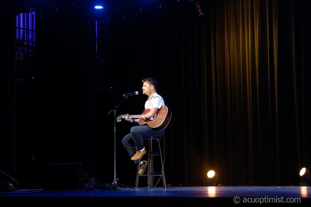 April 21, 2026 by Leslie Carrigan Leave a Comment Wesley Mullins, senior management major from Lewisville, performs his original song “After Abilene.” (Photo by Leslie Carrigan)