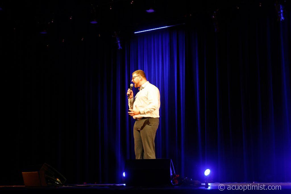 April 21, 2026 by Leslie Carrigan Leave a Comment Gabe DeVries, junior chemistry major from Anchorage, Alaska, performed while waiting for the judges to finalize the winners. (Photo by Leslie Carrigan)
