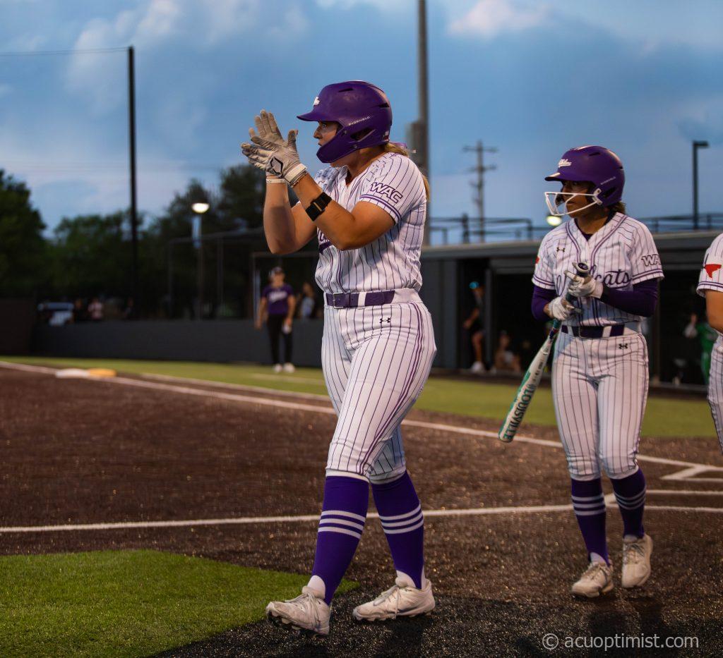 April 16, 2026 by Naya Pacheco Leave a Comment Elizabeth Schaefer, senior infielder from Rockwall, cheers after scoring on a teammate’s base hit. (Photo by Naya Pacheco)