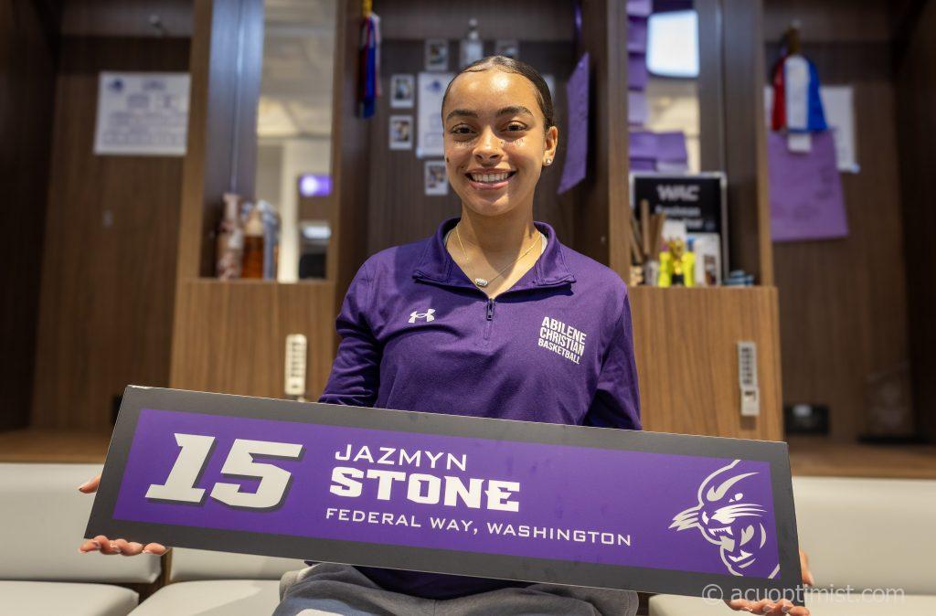 To be more specific, her name is Jazmyn Stone. The redshirt junior transfer from Federal Way, Washington, spent her entire collegiate career at the College of Charleston before becoming a Wildcat this season. Since then, she has become the heart of the ACU squad, one that didn’t get its rhythm until the eighth grade, when she started playing basketball.