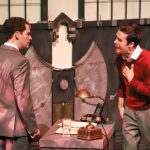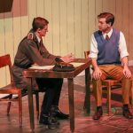 - Bauer, played by Zach Jones, informs Robert Mohr, played by Griffin Jones, about the students’ punishment. (Photo by David Mitchell)