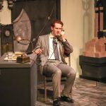 - Robert Mohr, played by Griffin Jones, speaks with his wife on the phone. (Photo by David Mitchell)