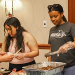 Students serve food  to guest at ISA’s International Food Festival. (Photo by Sarah Thompson)