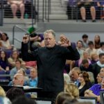 - Dr. Steven Ward, director of orchestra and bands, conducts the processional for the Opening Assembly. (Photo by Daniel Curd)