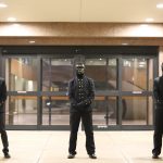 - Members from Nu Kappa Psi walk out to the Beauchamp Amphitheatre. (Photo by John Stai)