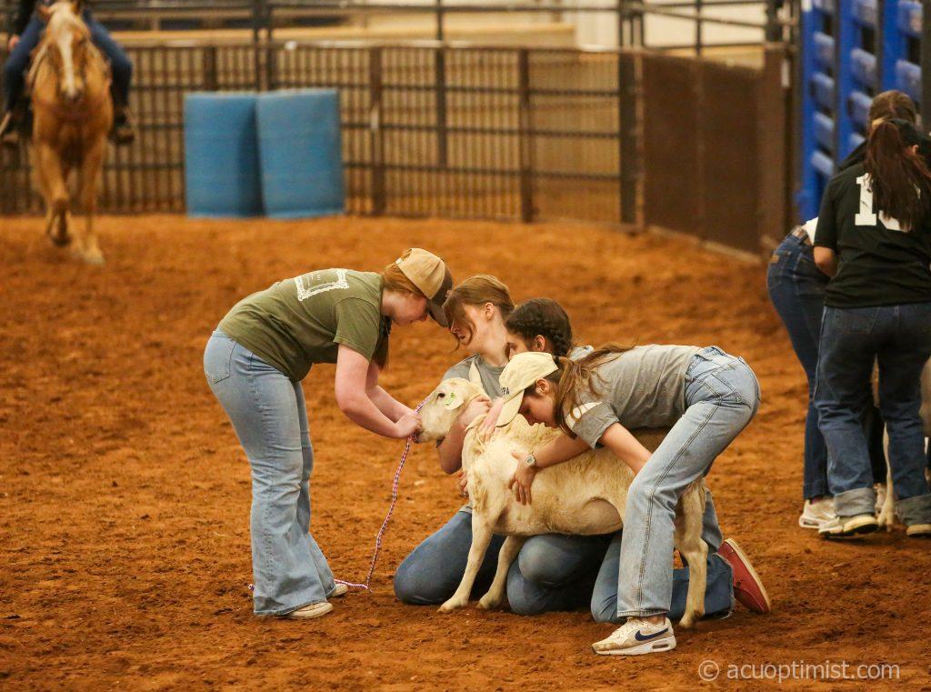 April 25, 2025 by Ashley Henderson Leave a Comment Members of Tri Kappa Gamma try to capture a sheep in the sheep scramble. (Photo by Ashley Henderson) AES Intramural Rodeo, TKG, 04-25-2025