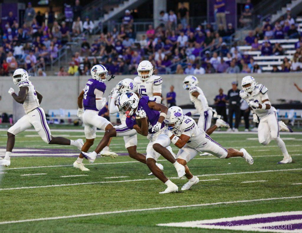 September 8, 2025 by Ashley Henderson Leave a Comment Javon Gipson, redshirt senior wide receiver from Richmond, runs the ball down the field. (Photo by Ashley Henderson) Football vs SFA 09-06-2025